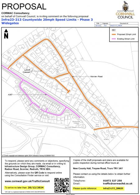 To see which streets are covered by the proposed speed limits, plans showing the proposals can be viewed either online at: https://www.cornwall.gov.uk/TrafficConsult or in person at New County Hall, Treyew Road, Truro, TR1 3AY.